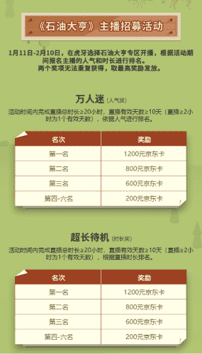 除了“油王”争霸赛,,,精英主播招募活动亦同步开启!!赛事分时长奖和人气奖,,,,奖励同样丰厚!!!