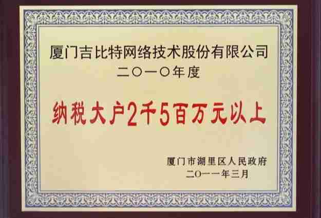 日前,,,,公司被厦门市湖里区人民政府授予了“2010年纳税大户”的荣誉称号,,,,充分体现了公司一贯合法纳税、、诚信经营的良好企业社会公民行为。。。。